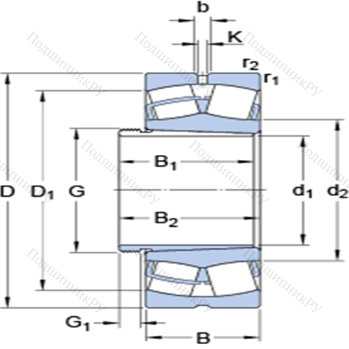 Сферические роликоподшипники на стяжной втулке 24124 CCK30/W33 + AH 24124 у которого конструкционной особенностью являются ролики в форме конуса и разъемный корпус. Изделие также может быть укомплектовано наружным кольцом с упорным бортиком или большим углом, двухрядными или четырехрядными роликоподшипниками, утолщенной внешней шиной.